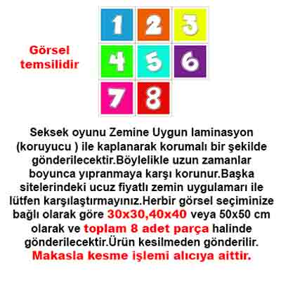 Seksek oyunu Zemine Uygun laminasyon (koruyucu ) ile kaplanarak korumalı bir şekilde gönderilecektir.